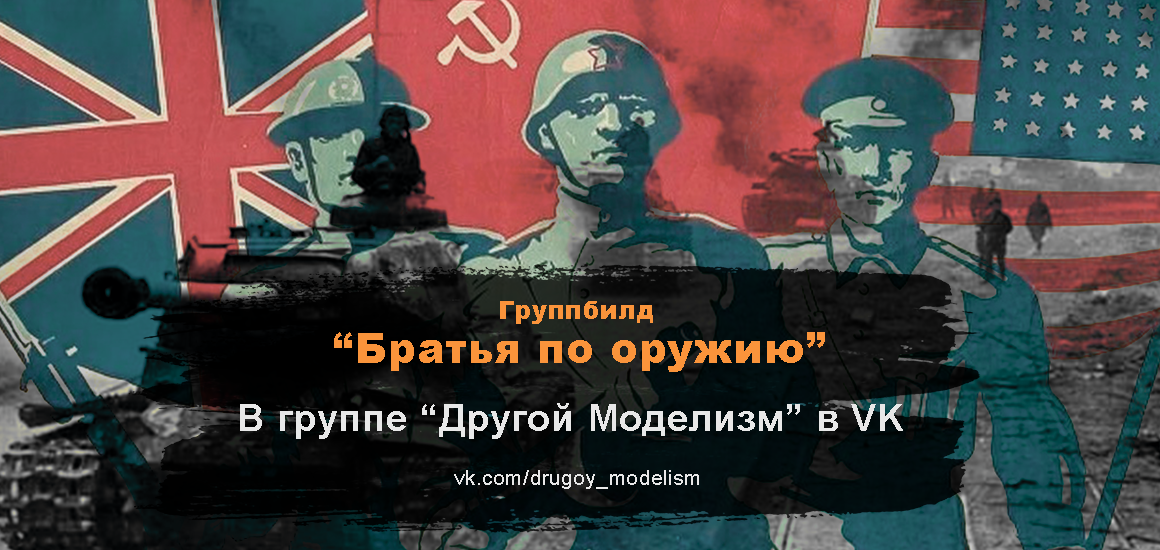 Правила участия просты: можно строить любую наземную технику стран Антигитлеровской коалиции, начиная с момента вступления этой страны в войну против стран Оси. Масштаб, конечно же, 35-й. Варианты окраски в общих рамках исторического соответствия, без лютого вотифа, но и без жёстких требований к прототипу. Количество допов не ограничено, как и не требуется их применение. Трофейная техника допускается по отдельному согласованию. Авиация или флот допускаются вне конкурса, в качестве поддержки. Участие означает публикации о стройке в предложке группы не реже одного раза в две недели. Первый пост должен содержать фото не начатого набора, чтобы создать отправную точку для вашей стройки. Также в посте необходимо публиковать хэштег групп-билда #дм_братья_по_оружию и личный хэштег, к примеру, #дм_братья_гринев, впрочем, вы и сами все знаете.